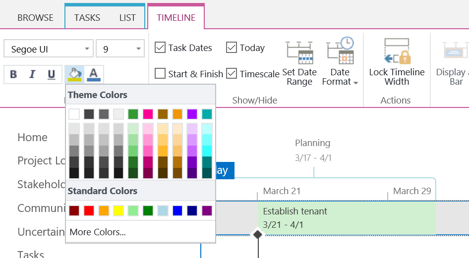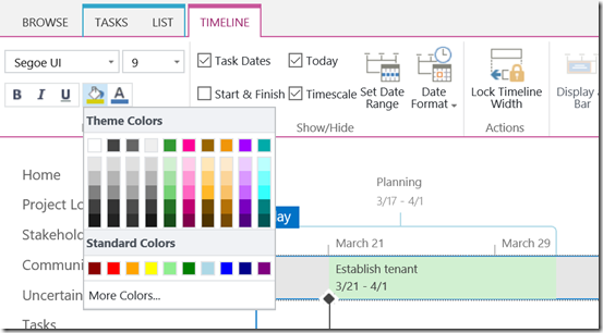 3: To modify color just mark the task, timeline, milestones, phases and change to your preferences.